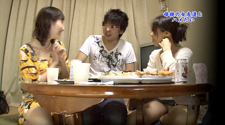 団地で母親(48)と2人で暮らすケンジくん(24)は母親のパート仲間の女性と何とかSEXしたい!お目当ての女性は巨乳で巨尻な30代の女性。パート仲間が自宅で飲み会をするということで、ケンジくんは立ち上がった!酔った別の母友がトイレでケンジくんのチンポをパクリ。しかし目当ての母友じゃないので完全拒否!みんな酔いつぶれたのを見計らって巨乳巨尻の母友に襲いかかる!ケツを叩きデカパイを揉みしだき中出し!